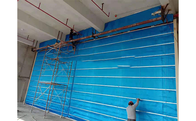 擋煙垂簾垂壁根據(jù)設(shè)計(jì)要求和現(xiàn)場(chǎng)實(shí)際情況采取如下施工順序:首先,搭設(shè)腳手架一放線(xiàn)一打眼--上脹栓一焊骨架。第二,吊件一安裝骨架…